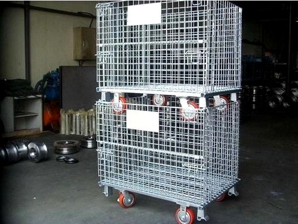 Material Handling Stackable Wire Container With Castors Warehouse Storage Cages Images |